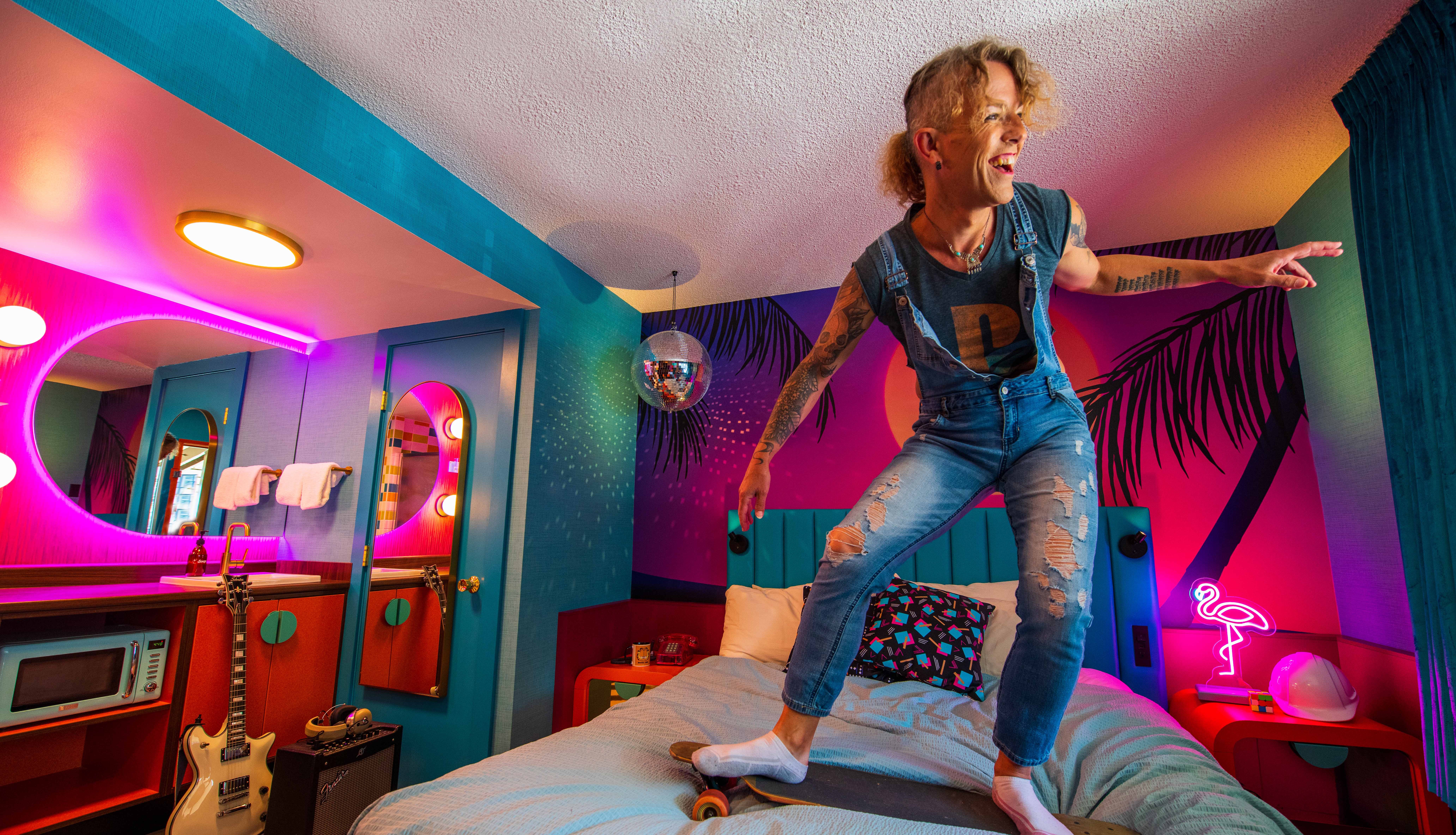 We take our retro aesthetic beyond the bright colours and funky fonts—it’s a whole vibe. Our lobbies are retro-chic sanctuaries, with lots of nooks and hideouts so you can set up your laptop or just hang out. Our guest rooms have legit rotary phones, retro alarm clocks, upcycled furniture and more! Every Hotel Zed is curated with so much detail you’ll feel like you’ve travelled back in time (no DeLorean necessary).